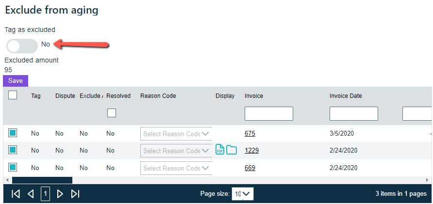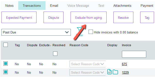 EXCLUDE FROM AGING - Allows you to remove certain invoices from being calculated in the aging bucket totals.