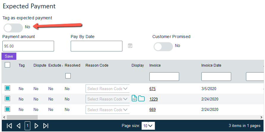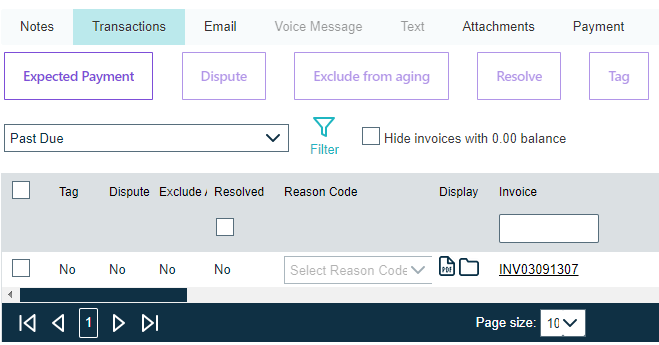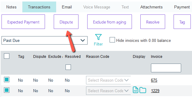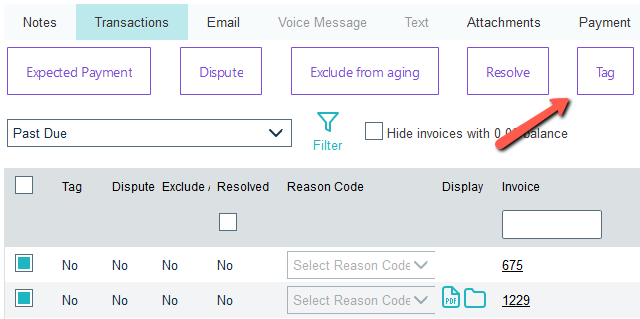 As of August 2020, the process of tagging/updating invoices in a communication has been reworked and simplified to give end users a quicker/easier way to tag invoices. This reworked process changes how invoices are tagged and also allows you to enter disputes and promise to pays in the same window.