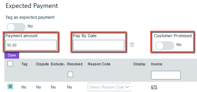 From here, enter the payment amount and the date is was promised. If the customer promised the payment by that date, toggle the "Customer Promised" switch.