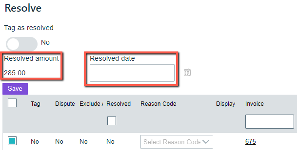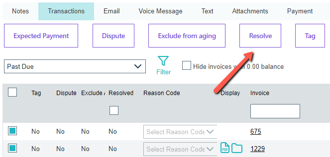 RESOLVE - Used to resolve open issues regarding unpaid invoices.