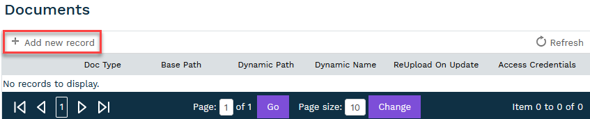 Click the "Add New Record Button" to create a new document support button