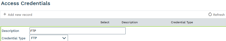On the Access Credentials window, click the "Add New Record" button