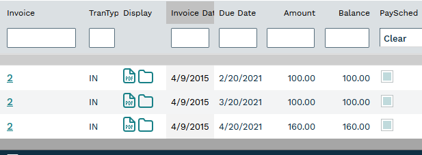 When you return to the invoices grid, you will see new records that all share the same TranID. These are the separated invoice records with the staggered due dates. These can now be paid individually.