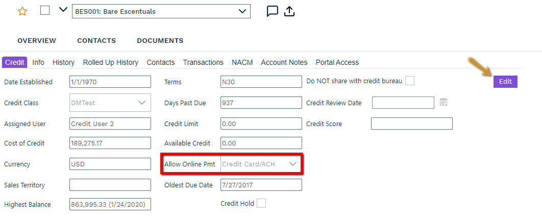 Users have the ability to update the online payment method for individual customers. The current methods being as follows: