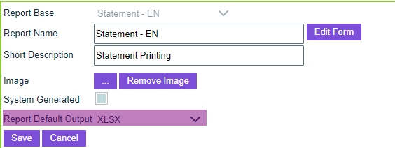 Report Master File: The default output of any report can be set on the report master file (Admin > Master Files > Report)