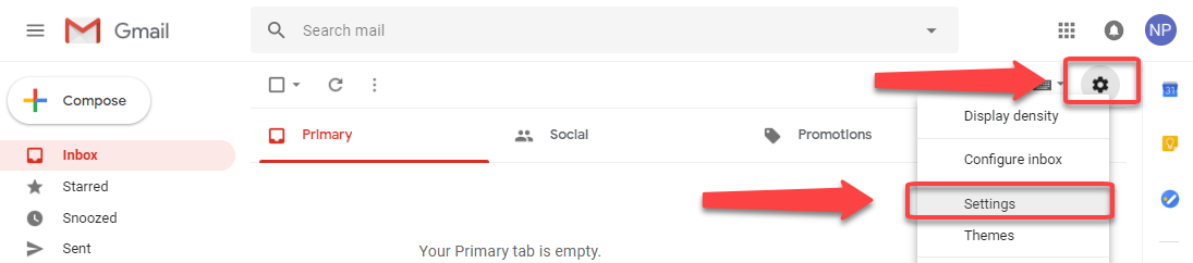 Step 2. Select Icon (Gear) and "Settings" from menu located on the far right side of second horizontal navigation menu.
