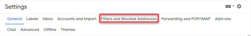 Step 3. Select Forwarding and Filters and Blocked Addresses from Settings Menu