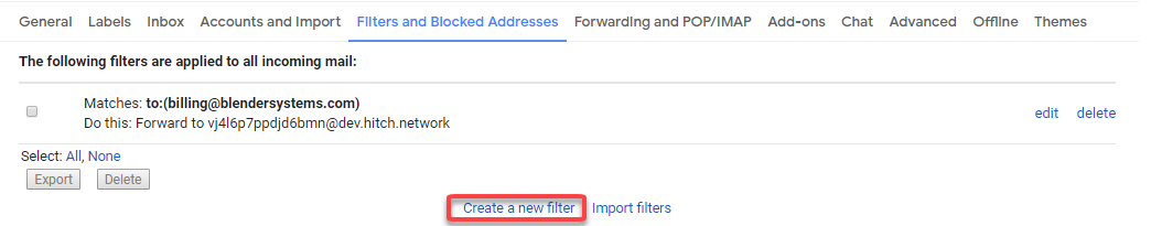 Step 1. Make sure e-mail forwarding in Gmail for your Hitch mailboxes - Accounts Payable and/or Accounts receivable -- Link Here